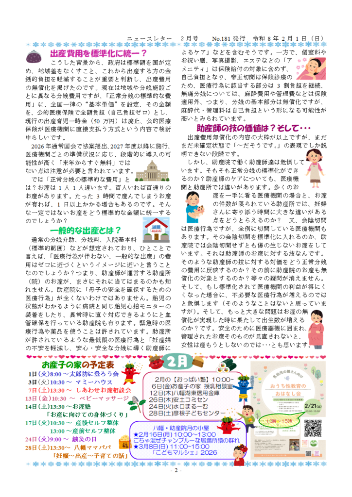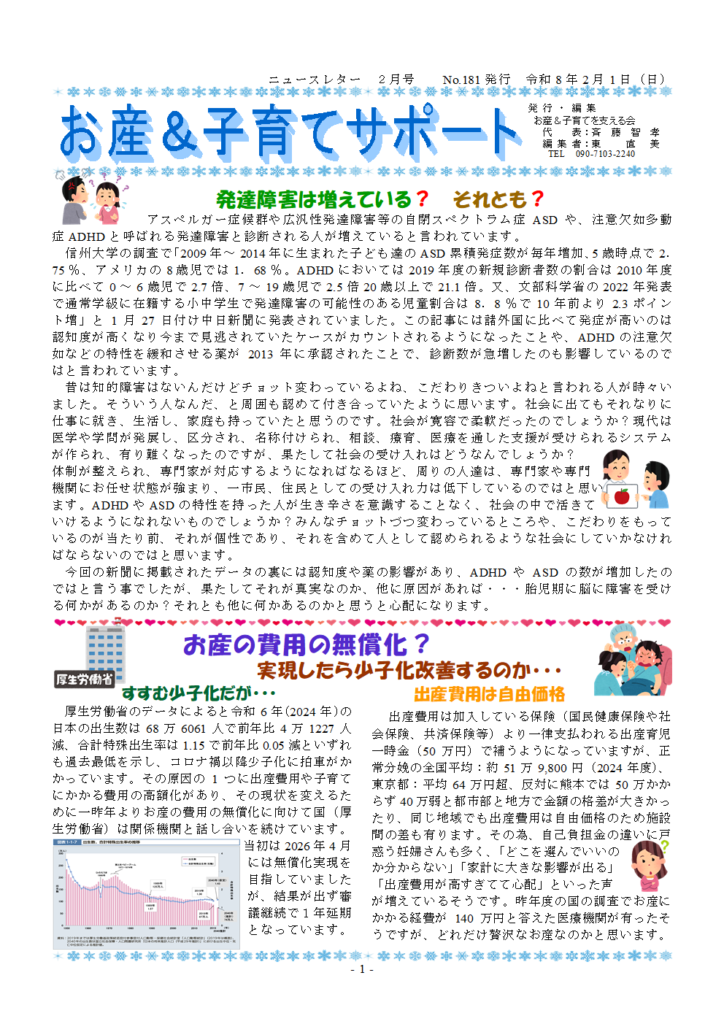 2026年2月13日 / 最終更新日時 : 2026年2月13日 osankoko お産&子育てを支える会より ニュースレター2月号 No.181 遅くなりましたが、お産&子育てを支える会からニュースレターが届きました。 ニュースレターNo.181ダウンロード FacebooktwitterCopy